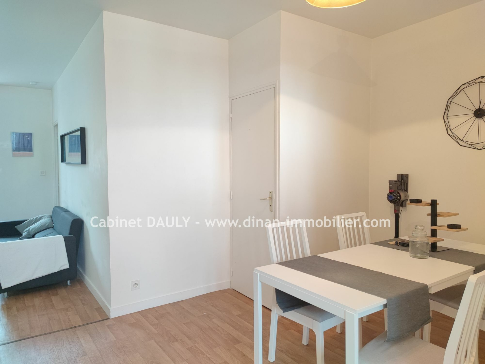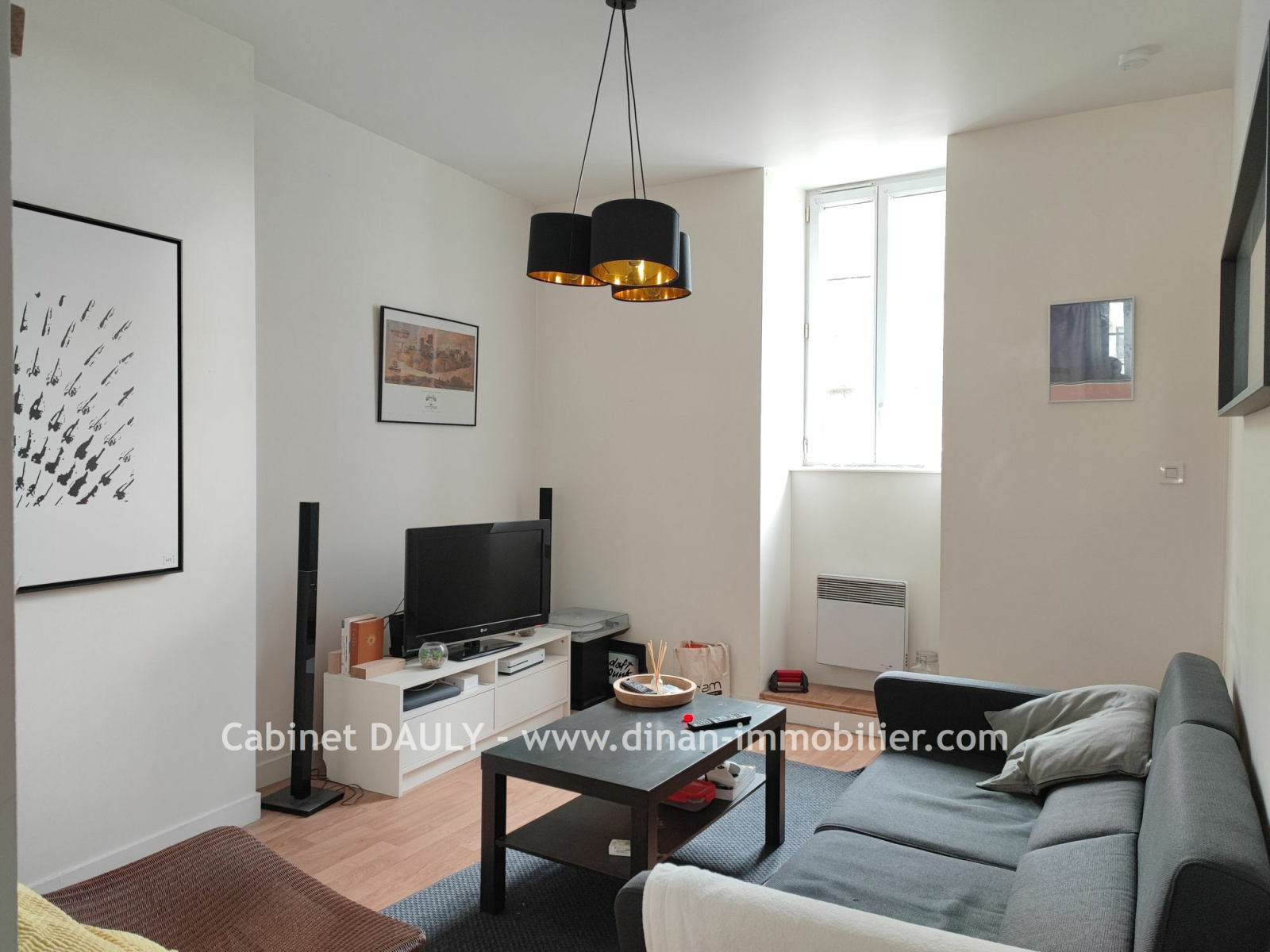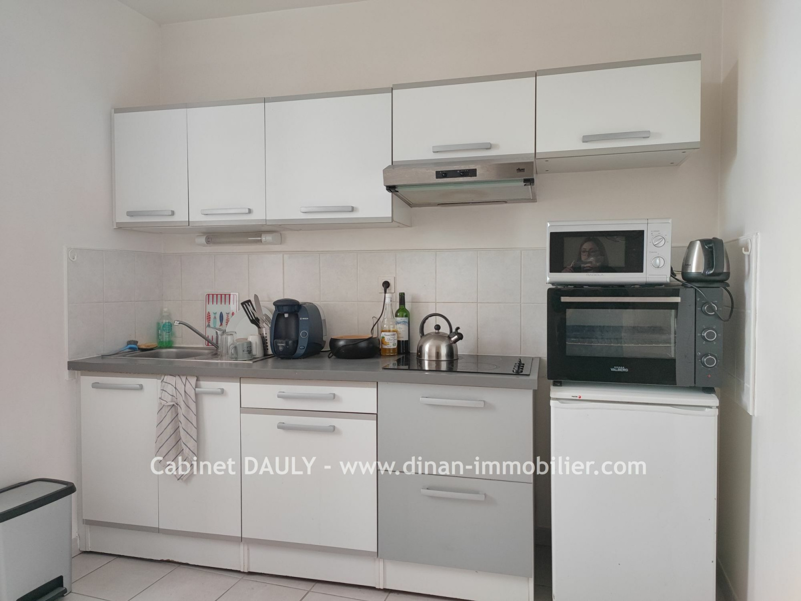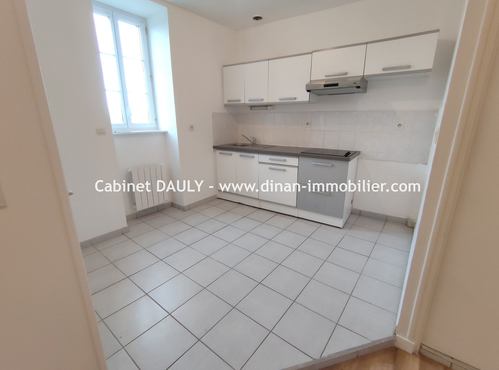DINAN Centre Ville - Appartement T2 de 42m² au 3ème étage sans ascenseur, comprenant une cuisine aménagée et équipée (plaque, et hotte), un salon, un séjour, une chambre, une salle d'eau avec placard, et un toilette. Chauffage électrique individuel. Eau et électricité individuelle. DPE : D. Libre de suite. Dépôt de garantie : 500 €. REF : DD500.