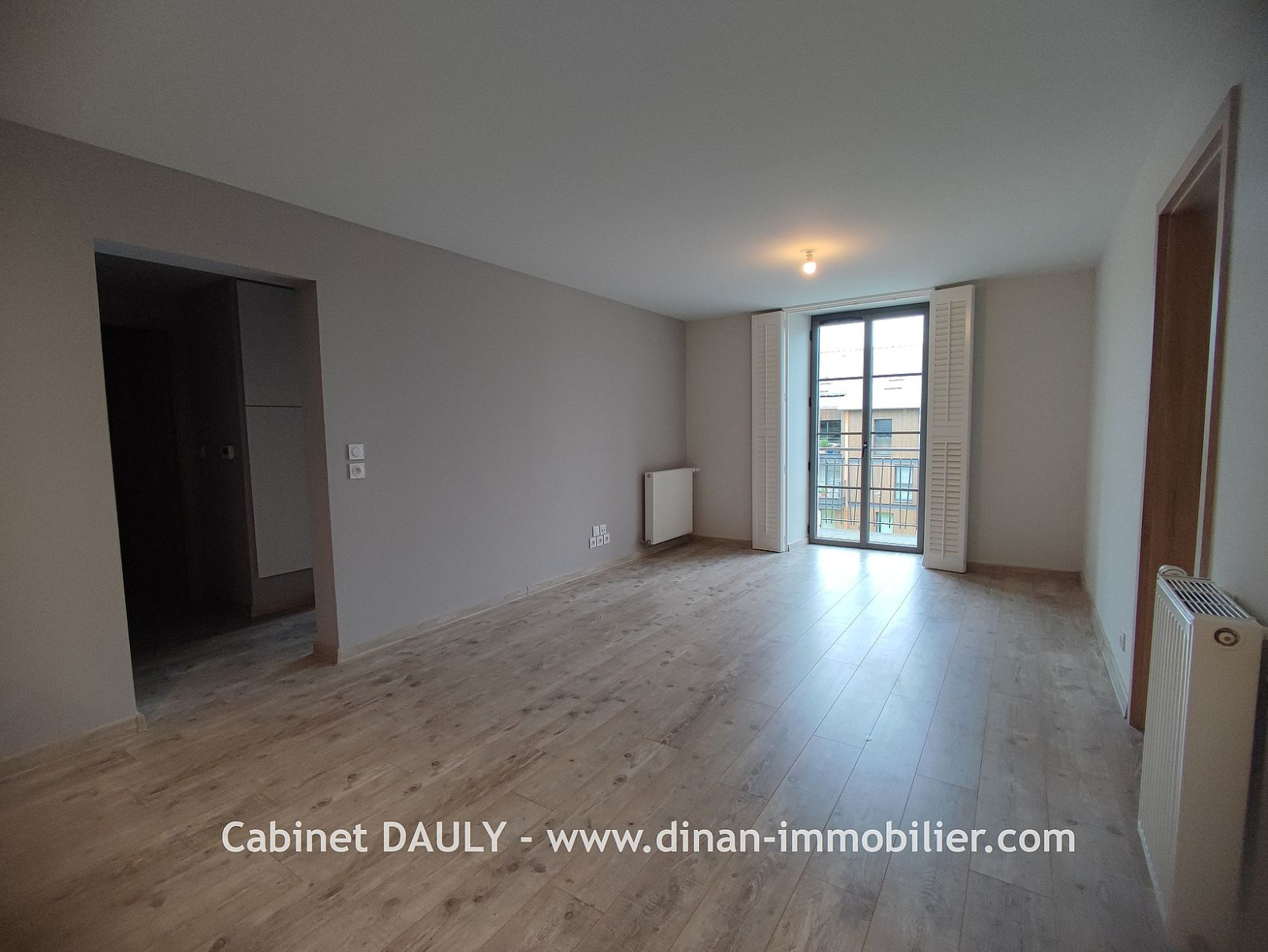 DINAN - Appartement T3 de 60m² dans une résidence de standing au 1er étage avec ascenseur composé d'une entrée avec placard, une pièce de vie avec coin cuisine aménagé et équipé (four, plaque, et hotte) donnant sur un balcon, deux chambres avec placard, une salle d'eau, WC, et une buanderie - chaufferie. Cave et place de stationnement. Chauffage gaz de ville individuel. DPE : C. Libre le 25/04/2026. Dépôt de garantie : 680 €. REF : LGD680