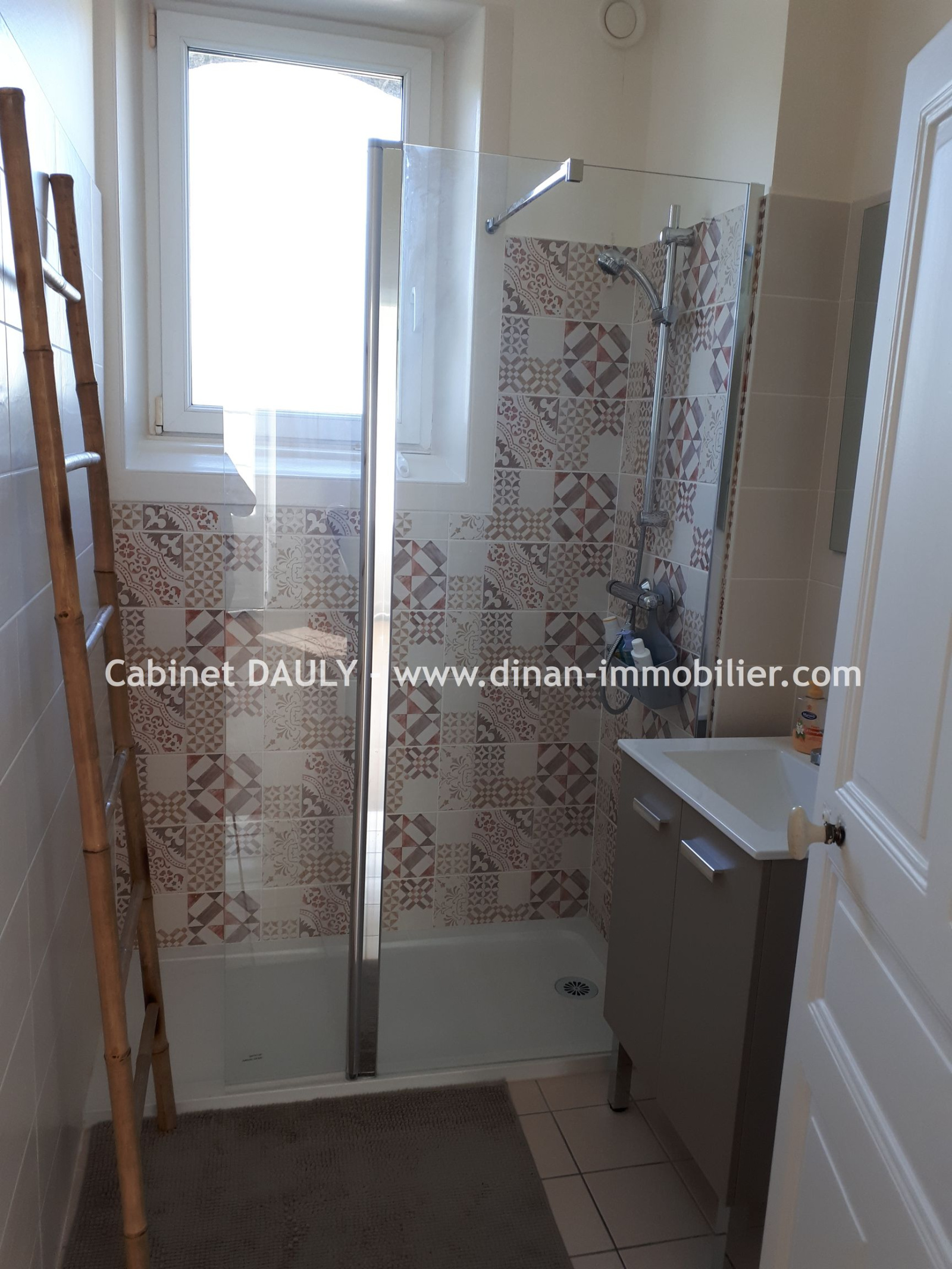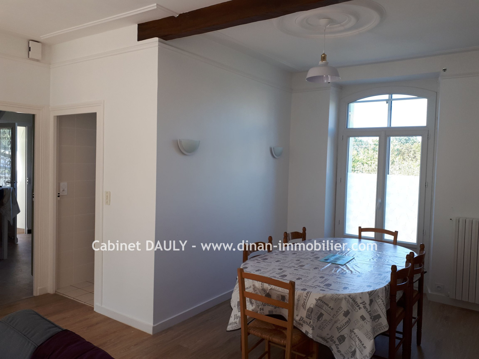 DINAN - Maison T4 sur sous-sol mitoyenne d'un côté de 86 m² comprenant au rez-de-chaussée une entrée - véranda, une cuisine aménagée et équipée (plaque, hotte, et réfrigérateur top), un salon - séjour, une chambre, et une salle d'eau avec WC. À l'étage un dégagement desservant un bureau avec placard, une chambre avec placard, une pièce pouvant servire de bureau, une salle de bains avec WC, et un placard - débarras. Sous-sol avec partie garage, chaufferie - buanderie. Jardin clos et cellier. Chauffage gaz de ville individuel. Eau, électricité et gaz de ville individuelles. DPE : C. Dépôt de garantie : 930 €. Libre le 30 Décembre 2025. REF : CD930.