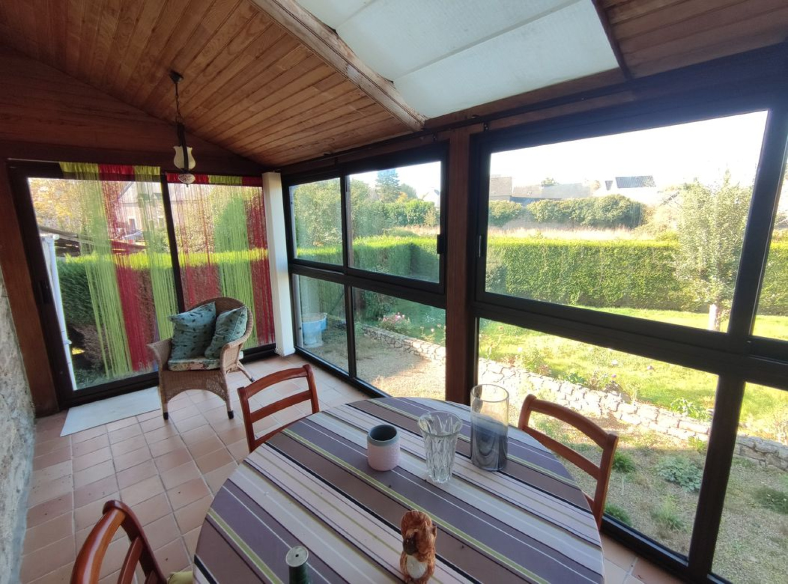 EXCLUSIVITÉ - VILDÉ-GUINGALAN - Maison T5 de 107 m² se composant au rez-de-chaussée d'une entrée, une cuisine aménagée, un salon avec cheminée, une salle d'eau, WC séparé, et une véranda. À l'étage un palier desservant 3 chambres, une salle de bains avec baignoire d'angle, douche et WC. Au 2ème étage un grenier. Au sous-sol, une cave, un cellier, une chaufferie buanderie, et 2 pièce avec accès indépendant. Garage. Le tout sur une parcelle de 610 m² clos.
