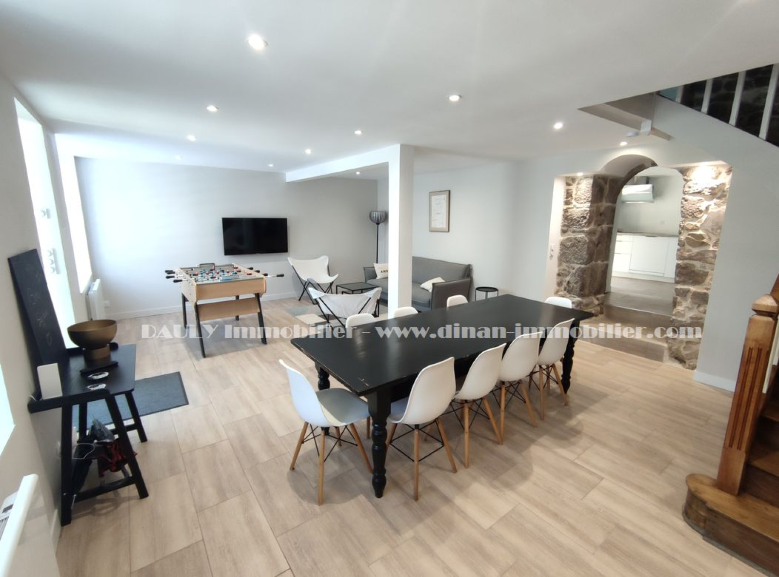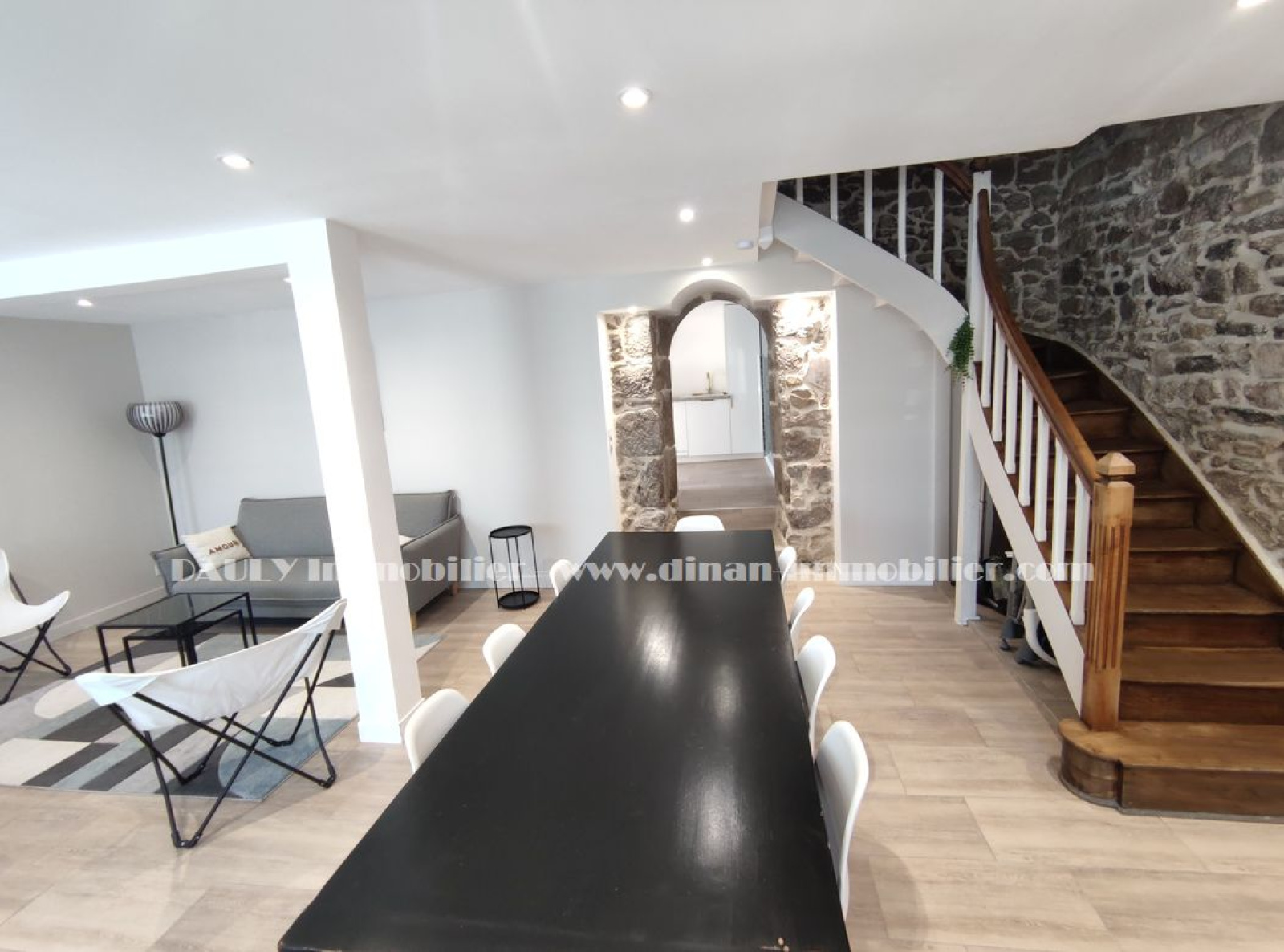 VENDU PAR DAULY IMMOBILIER vous propose en EXCLUSIVITE, sur la commune d'AUCALEUC, proche de Dinan, une maison en pierres rénovée sur 3 niveaux avec une belle pièce de vie exposée plein sud de 36m2, une cuisine aménagée et équipée donnant sur une terrasse couverte, un WC, au 1er étage, une suite parentale avec chambre de 19m2 et salle d'eau, une salle d'eau avec WC et deux chambre au 2ème étage. Cour sur l'avant et beau jardin sur l'arrière sans vis à vis, d'une surface totale de 758m2. Rénovation de qualité. Classe énergétique : C.